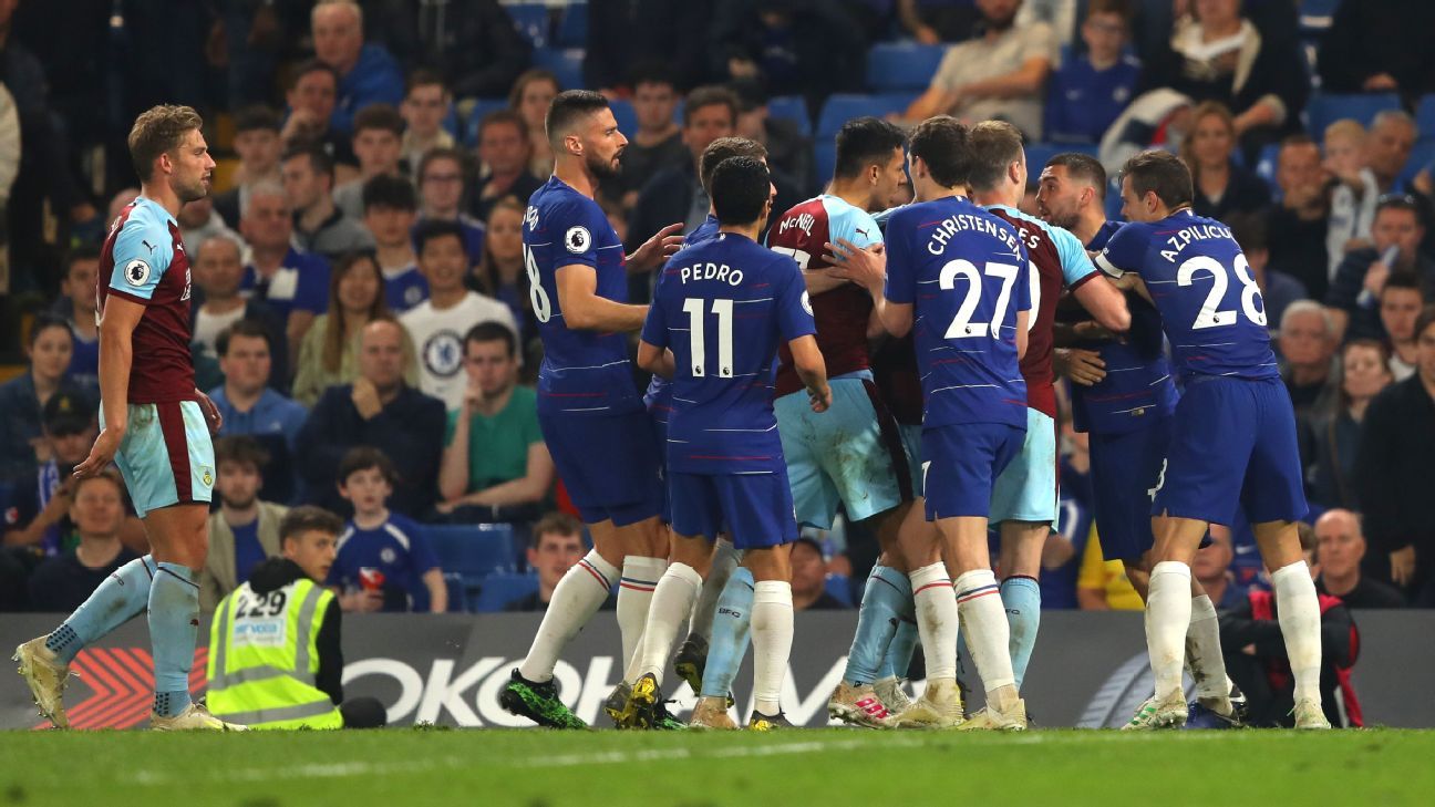 LONDON -- Several individuals on the Burnley bench riled Chelsea head coach Maurizio Sarri by repeatedly calling him "s--- Italian" prior to the touchline brawl that marred Monday's 2-2 draw between the clubs at Stamford Bridge, sources have told ESPN FC.